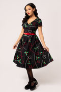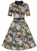 Deze jurk is een echte blikvanger met de kleurrijke bloemen op een zwarte achtergrond. Vrolijk de winter door dus!